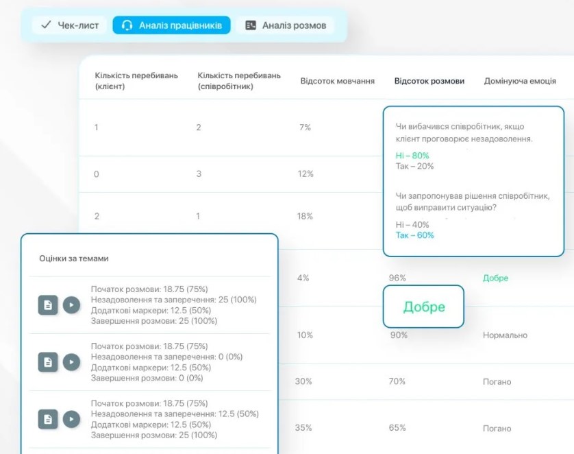 Ще один тип завдань – аналіз якості комунікації. Тут ШІ розшифровує записи дзвінків, розділяє ролі «клієнт/співробітник», відмічає ключові слова, до прикладу, згадки конкурентів, фіксує скарги та аналізує емоції. Це дозволяє швидко виявляти проблеми без прослуховування розмов, що особливо актуально для сфери електронної комерції, де якість сервісу впливає на продажі.