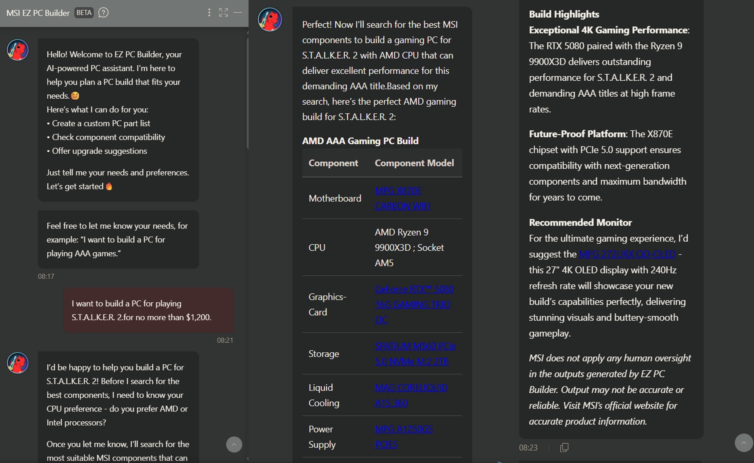 Нещодавно прочитав на ITC новину про те, що MSI представила свого нового ШІ-асистента — EZ PC Builder. Він повинен допомагати у підбірці компонентів при збиранні персонального комп’ютера. І ось я вирішив перевірити на що він здатний і паралельно порівняти його з Chat GPT 5.