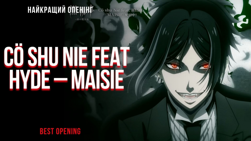 - Black Butler: Cö shu Nie feat HYDE – MAISIE. Візуал та музика, яка чомусь нагадала старі французькі пісні;