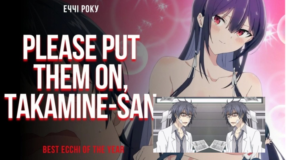 - Please Put Them On, Takamine-san / Вдягни їх, Такаміне – Класичний master-slave зв’язок з перевдяганням білизни заради повернення у часі. Супергероїка, яку ми заслуговуємо;