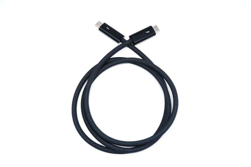 Кабель Apple Thunderbolt 4 Pro (1 м) має такий самий вигляд як і дві попередні моделі, аксесуар плетений чорною конструкцією, яка скручується без заплутування, що дуже полегшує використання кабелю.