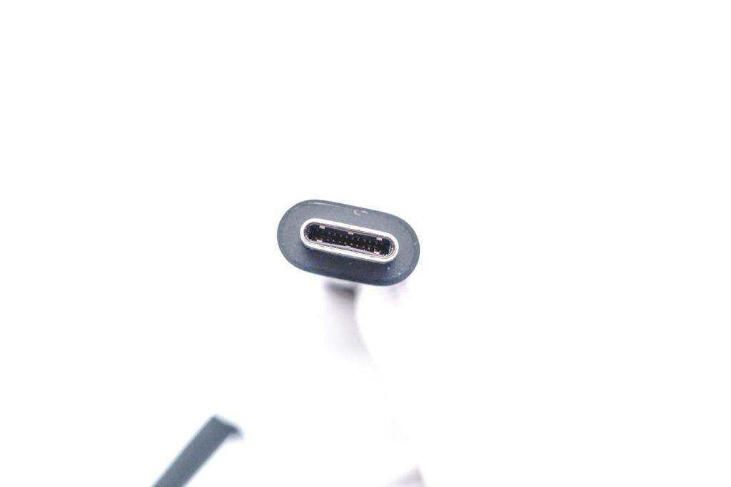 Ззовні між кабелем та роз’ємом для зарядки немає захисної оболонки. Роз’єм досить довгий і має логотип Thunderbolt.