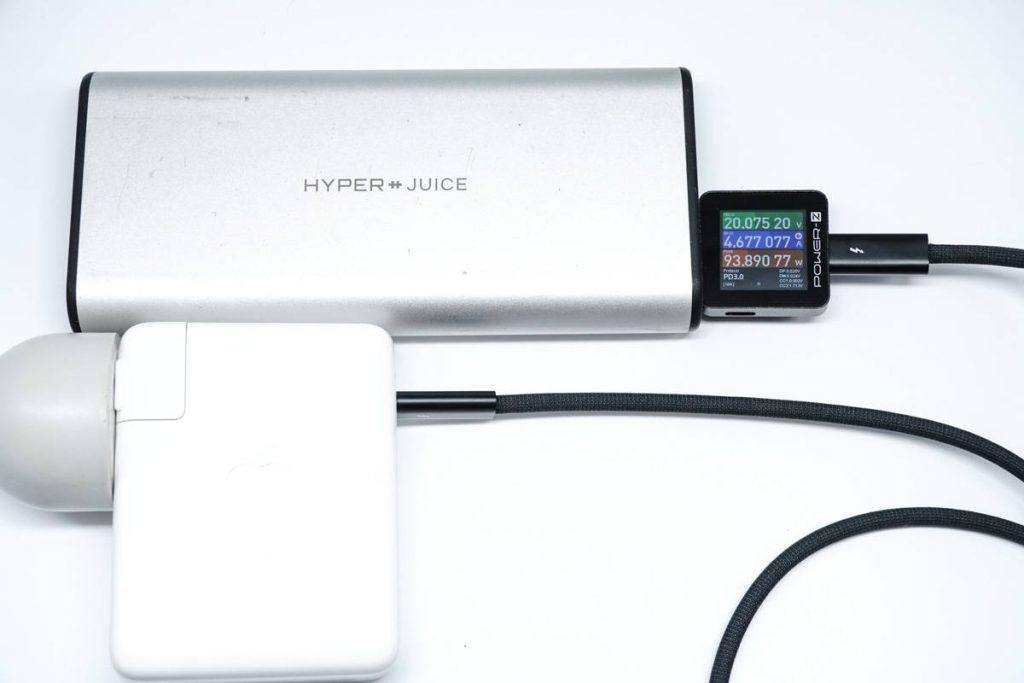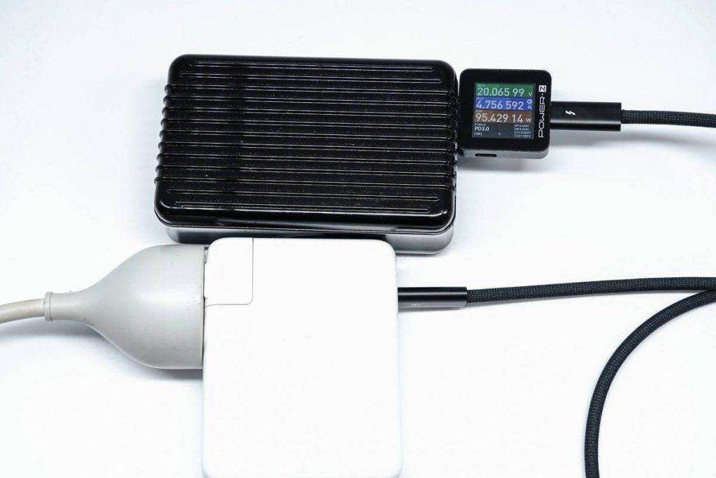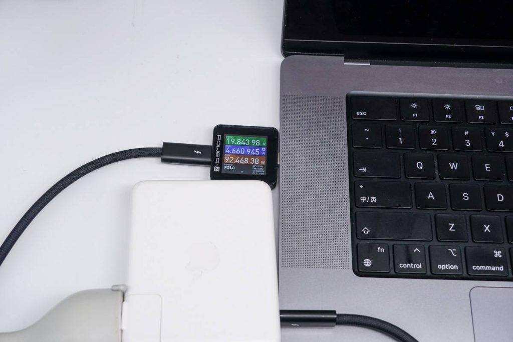 При використанні зарядного пристрою Apple GaN 140 Вт з кабелем Thunderbolt 4 Pro (1 м) для заряджання блоку живлення, що підтримує швидке заряджання 140 Вт, потужність становить 20,06 В 4,75 А 95,42 Вт, а потужність кабелю – 100 Вт.