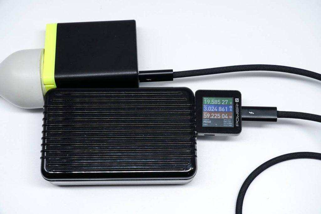 Однак максимальна потужність становитиме близько 100 Вт, якщо заряджати блок живлення, що підтримує швидку зарядку 100 Вт, іншим зарядним пристроєм потужністю 60 Вт.