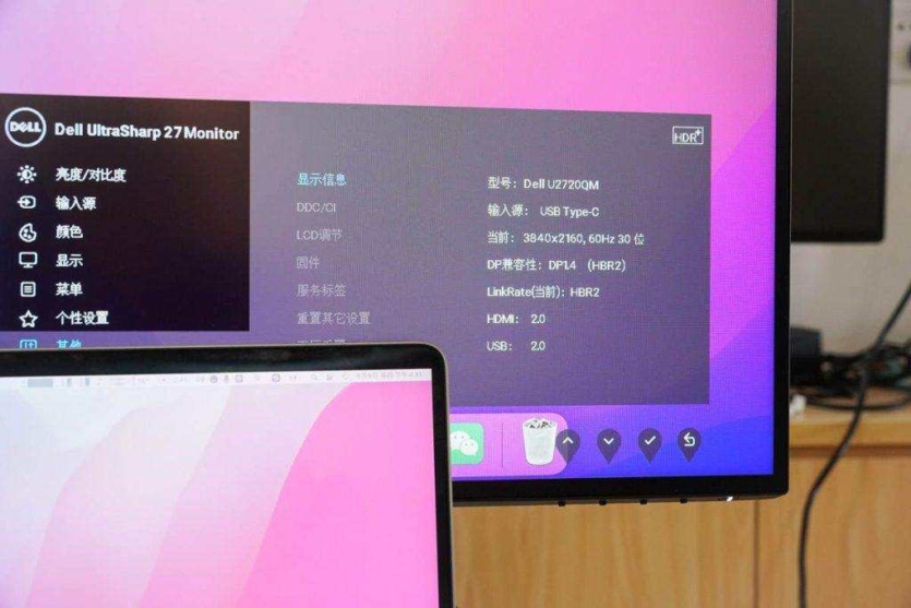 Підключіть кабель до порту USB-C вашого MacBook Pro та монітора DELL U2720QM. Як показано на малюнку, кабель підтримує передачу відео та працює добре.