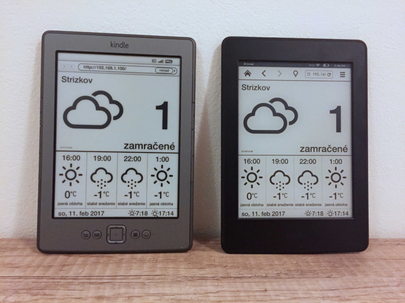 У мене є другий Kindle, ще старіший — Kindle 4. Я перетворив його на погодну станцію. Тепер він стоїть на кухні і показує погоду на тиждень. Оновлюється автоматично, заряду вистачає на місяць. Виглядає стильно і мінімалістично. Гості іноді питали, що це за штука.