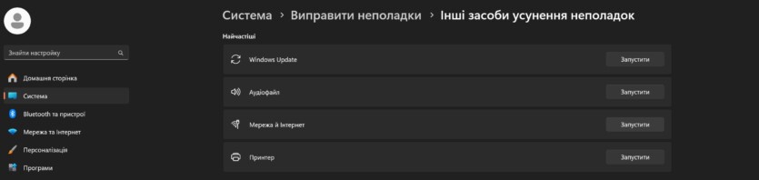 В налаштуваннях переходимо до системи й шукаємо «Виправити неполадки». Там у «Інші засоби усунення неполадок» знаходимо «Мережа й Інтернет». На жаль, в мене він нічого не знайшов, хоча це не дивно.