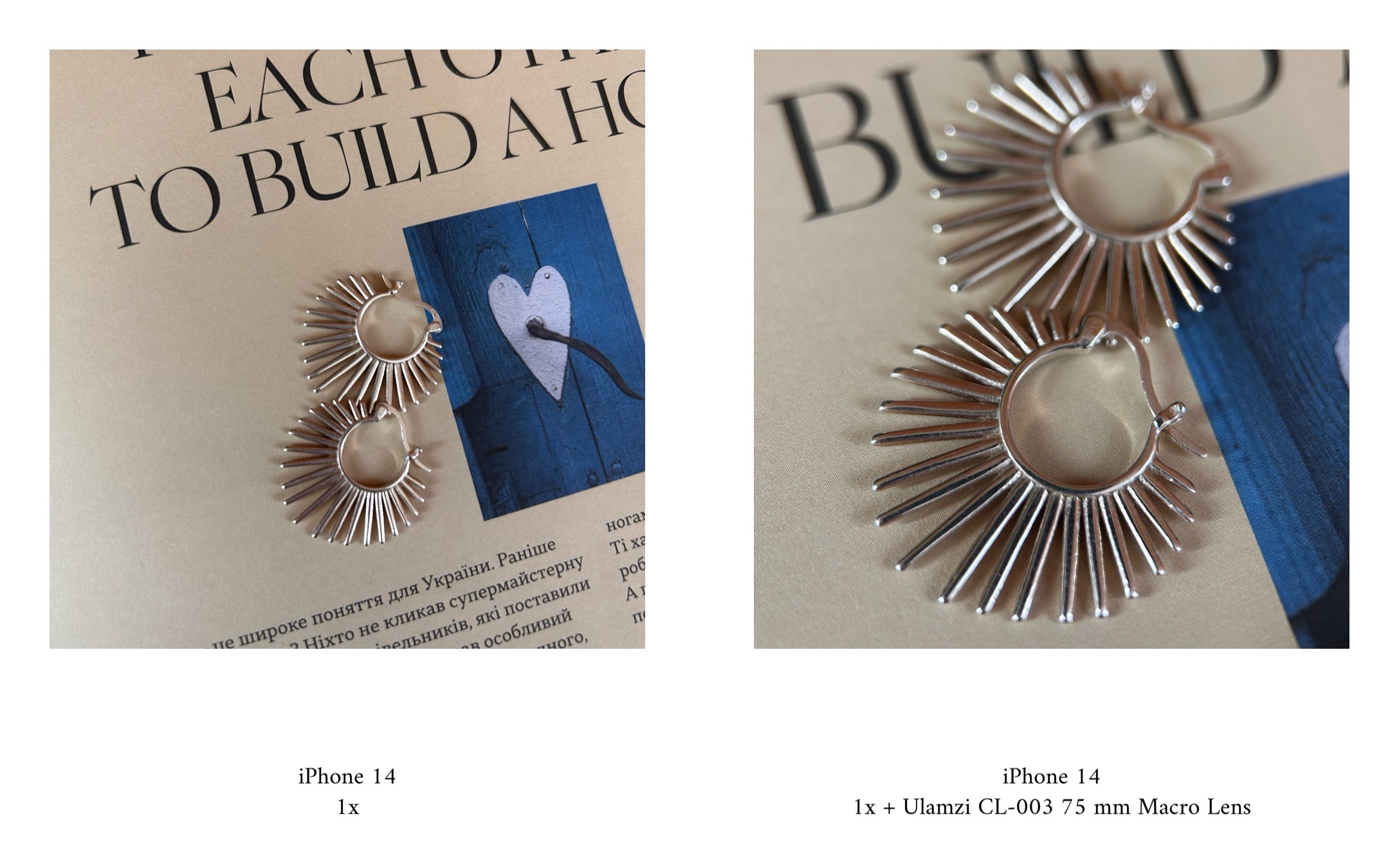 Для предметної зйомки лінза також добре підходить — прикраси, аксесуари та інші невеликі об’єкти виглядають більш виразно за рахунок крупного плану і чіткої передачі деталей.