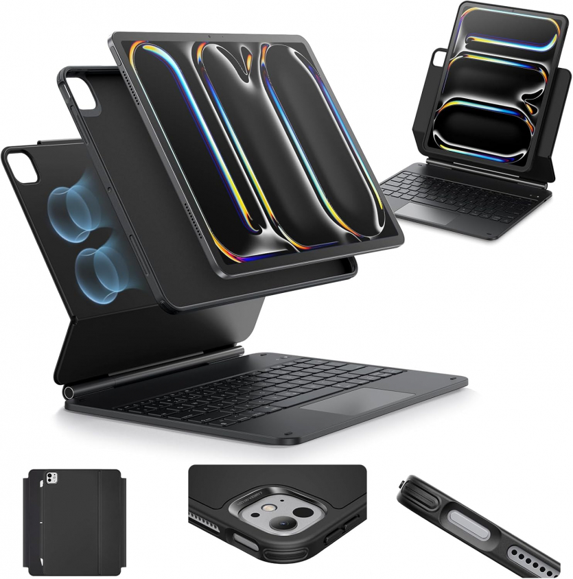 ESR також представила чохли-клавіатури, які перетворюють iPad на повноцінну робочу станцію. Преміальний Rebound Magnetic Keyboard Case 360 поєднує надійну магнітну підставку та знімний задній чохол. Він підтримує різні кути огляду як у вертикальному, так і горизонтальному положенні. Чохол оснащений функціональним трекпадом із підтримкою жестів, а також клавішами ножичного типу з трирівневим підсвічуванням у 12 кольорах, зазначає ESR.