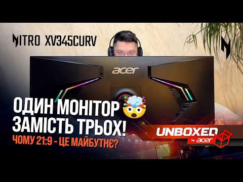 Широкоформатні монітори — це окремий нішевий продукт. На відміну від телевізорів, діагональ яких можна розтягувати на скільки завгодно, максимальний розмір екрана монітора залежить від відстані до користувача. Який зазвичай сидить приблизно за 1 метр від дисплея. Тож, щоб запобігти оптичному викривленню зображення на такій дистанції, та щоб увесь вміст екрана потрапляв у поле зору, монітори з великим розміром діагоналі доводиться робити не пласкими, а заокругленими. Саме цей аспект і формує специфічну нішу широкоформатних екранів з діагоналями понад 34″ та співвідношенням сторін 21:9. І яскравим представником цього класу є вигнутий дисплей Acer Nitro XV345CURV (UM.CX5EE.V05), про основні можливості якого ми розкажемо та покажемо у цьому короткому відеоогляді: