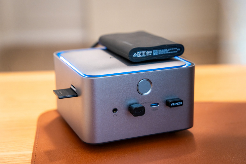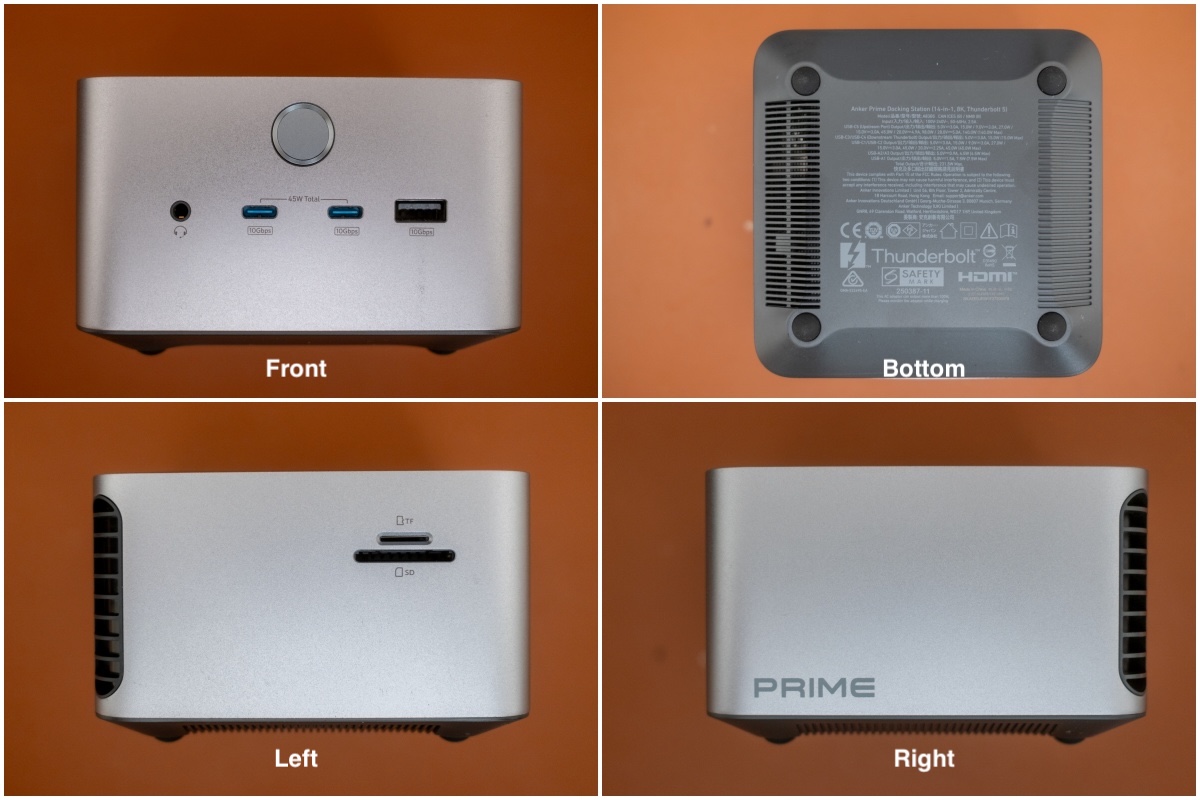 На передній панелі розміщено кнопку живлення, комбінований аудіороз’єм, один USB-A (10 Гбіт/с) та два USB-C (10 Гбіт/с). Зчитувачі SD та TF знаходяться зліва. Правий бік — порожній, лише логотип PRIME.