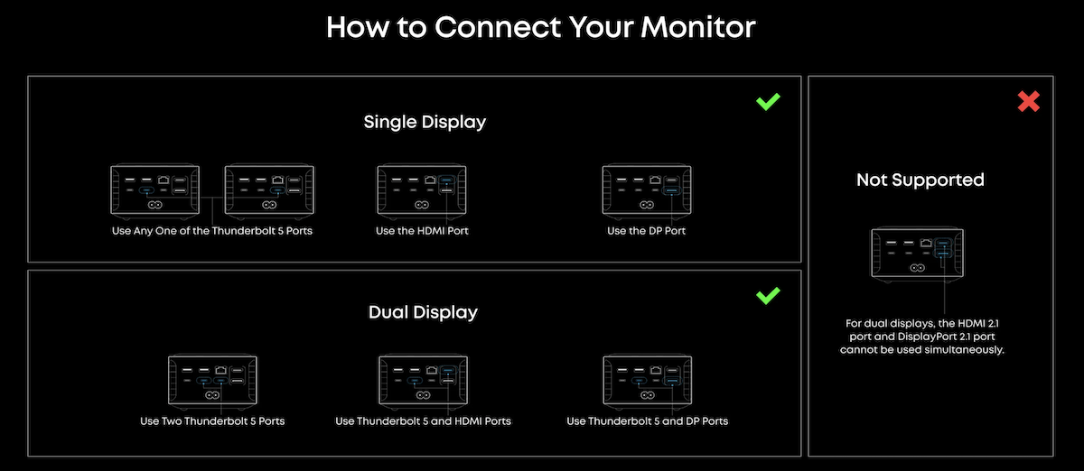 - HDMI 2.1 і DisplayPort 2.1 не можна використовувати одночасно