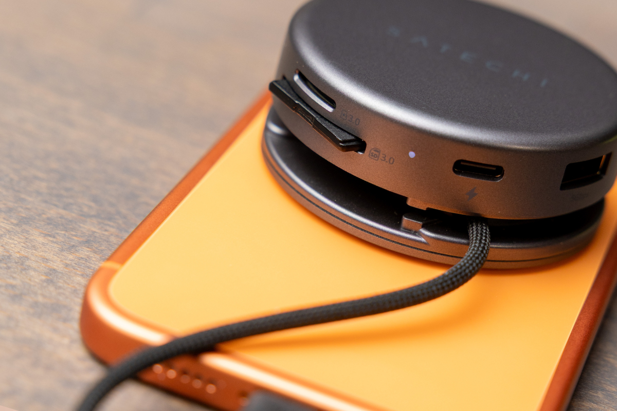 Індустрія пропонує безліч варіантів USB-C хабів у різних формфакторах, і кожен з них має своє ідеальне призначення. Наприклад, класичні алюмінієві адаптери на кабелі чудово підходять для стаціонарного робочого місця. Але якщо ви постійно працюєте в дорозі, тримаєте лептоп на колінах, знімаєте відео на iPhone або розгортаєте “офіс” за крихітним столиком у кафе — звичайний хаб на дроті стає не надто зручним. У таких умовах він може заважати і створювати ризик випадково пошкодити порт при різкому русі.