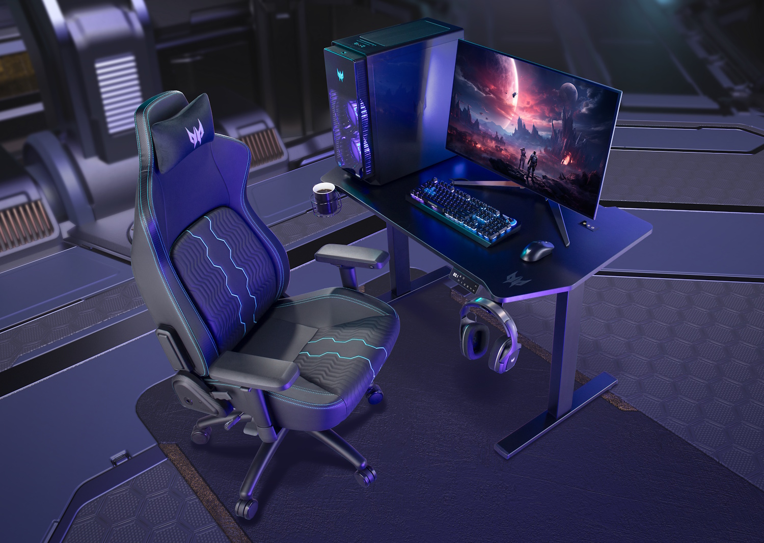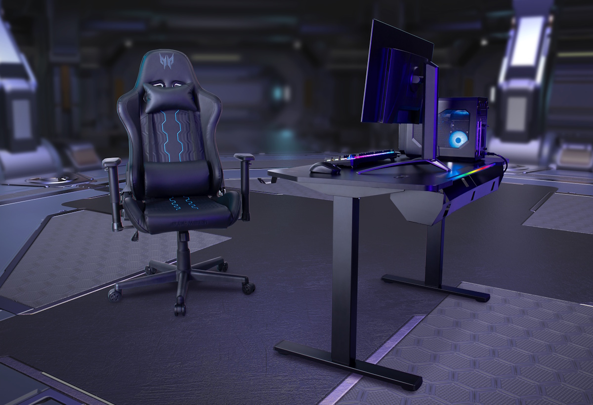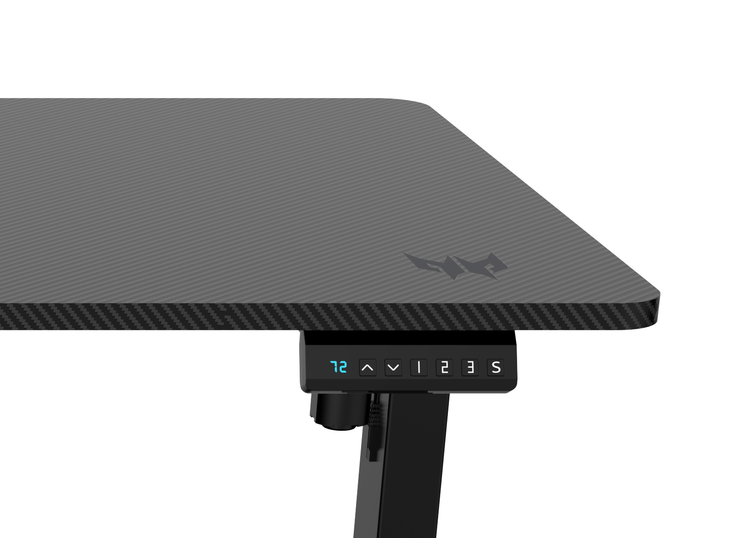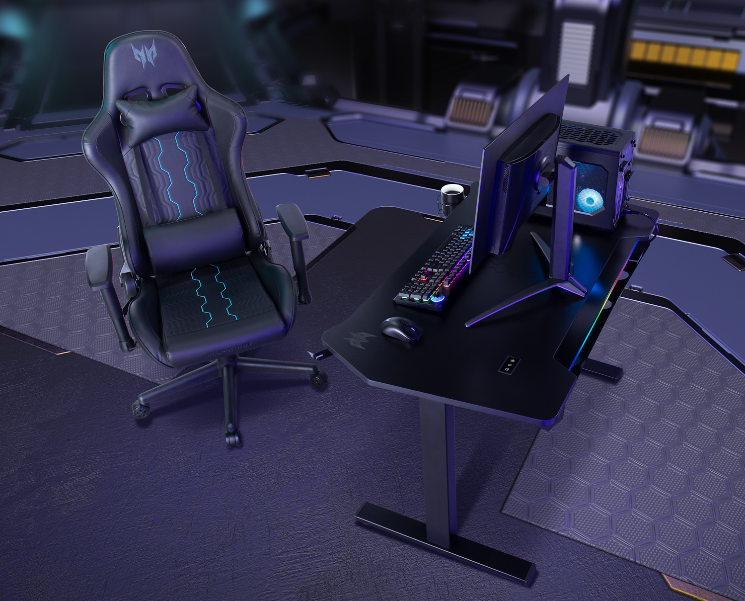 Ігровий стіл — це також важливий елемент ігрового сетапу. Крім того, що він має витримувати вагу обладнання та емоції гравців, мати різноманітні додаткові опції на кшталт тримача для навушників чи додаткових портів, в ідеалі, ігровий стіл має бути регульованим по висоті. Це дозволяє уникнути використання підставки під ноги для компенсації різниці у зрості. Адже зазвичай столи роблять під людей “середнього зросту”. Але ж бувають і високі люди й люди невеликого зросту, особливо підлітки та діти. А також й ті, кому подобається або хто з медичних причин змушений працювати за комп’ютером стоячи. Й тут на допомогу приходить ігровий стіл Predator Nexus 332 від Acer. Його головною особливістю є можливість регулювати висоту стільниці за допомогою електроприводу.