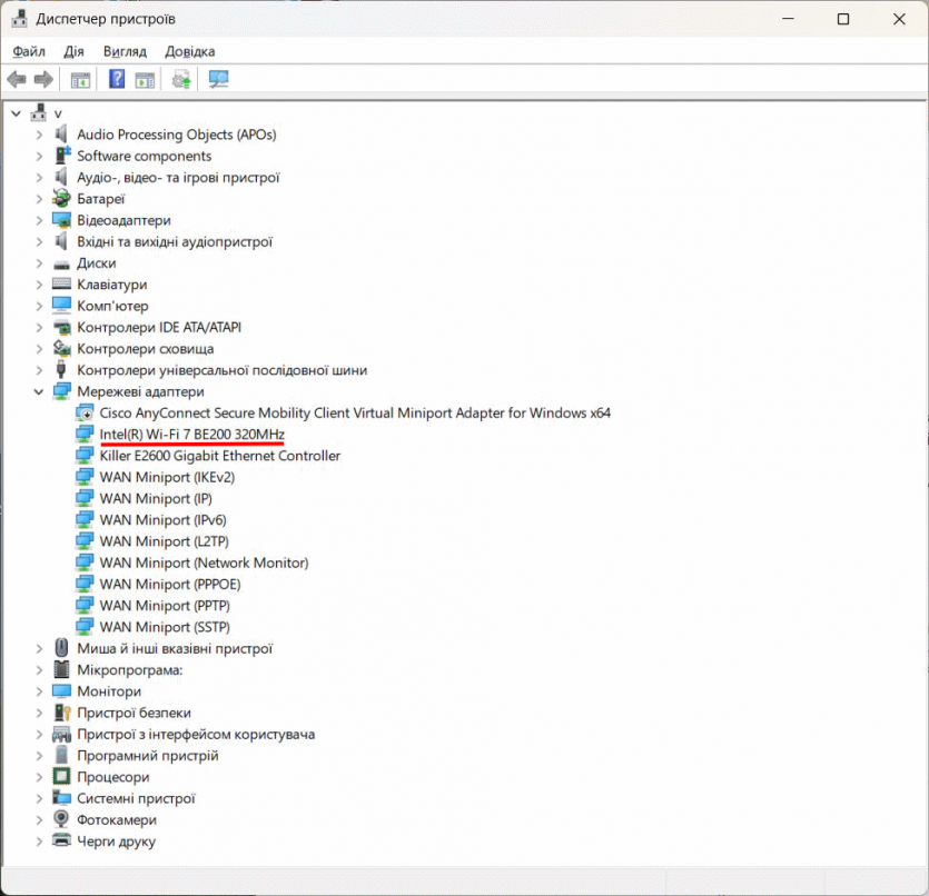 Після заміни в ноутбуці бездротової мережевої карти Intel AX201NGW (підтримує Wi-Fi 6) на Intel BE200NGW (підтримує Wi-Fi 7) сам по собі Wi-Fi працює чудово. На відміну від Bluetooth, вбудованого у цю карту. Після завантаження системи Bluetooth не можна знайти “вдень з ліхтарем”: