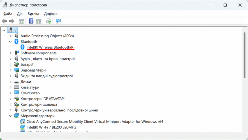 Чому так відбувається? В процесі завантаження системи BIOS ноутбука ініціює USB пристрої і далі передає цю інформацію ОС. Судячи з усього, BIOS ноутбука має програмний недолік, який не дозволяє йому виявити окремий пристрій USB Bluetooth у комбінованій мережевій карті Intel BE200NGW. От ми і не бачимо Bluetooth після завантаження системи.