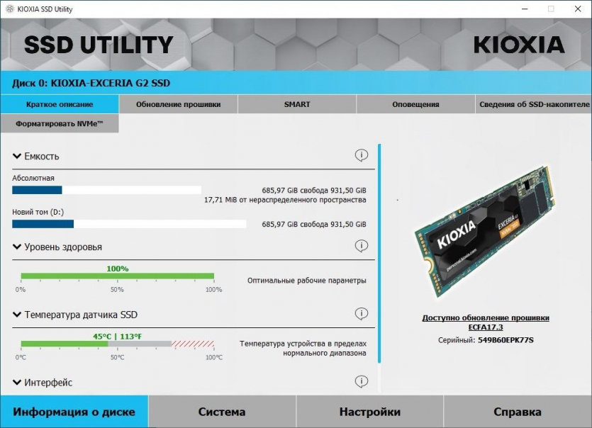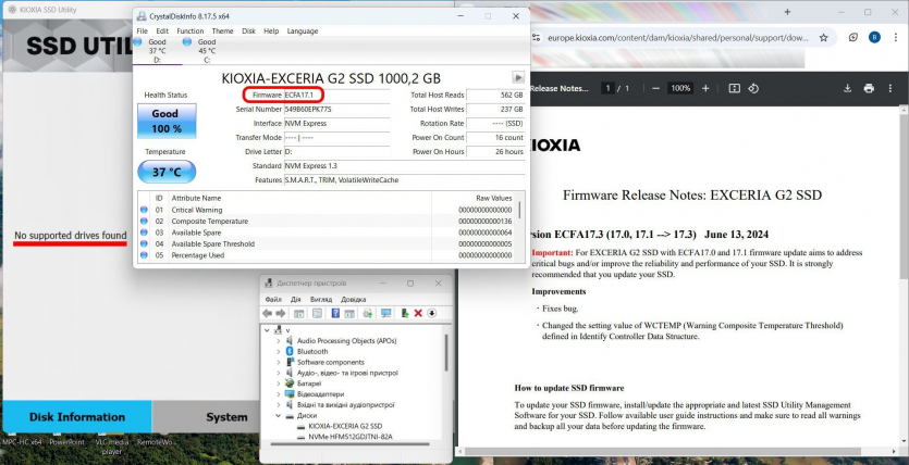 Що ж робити, якщо оновлення критичні, а диск – не системний (у моєму випадку диск KIOXIA EXCERIA G2 1TB був придбаний для встановлення у зовнішню кишеню USB 3.2 Gen 2, але не суть – необхідності оновлення це не скасовуває).