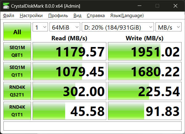 При встановленні другого SSD у ноутбук, довелося зіткнутися з тим, що швидкість читання з накопичувача була вкрай низькою – у рази нижчою за заявлене значення. Так, у характеристиках SSD Apacer AP2TBAS2280P4UPRO-1 заявлена швидкість читання 3500 МБ/с, а по факту зчитування інформації виявилося повільнішим аж у 2,7 рази: