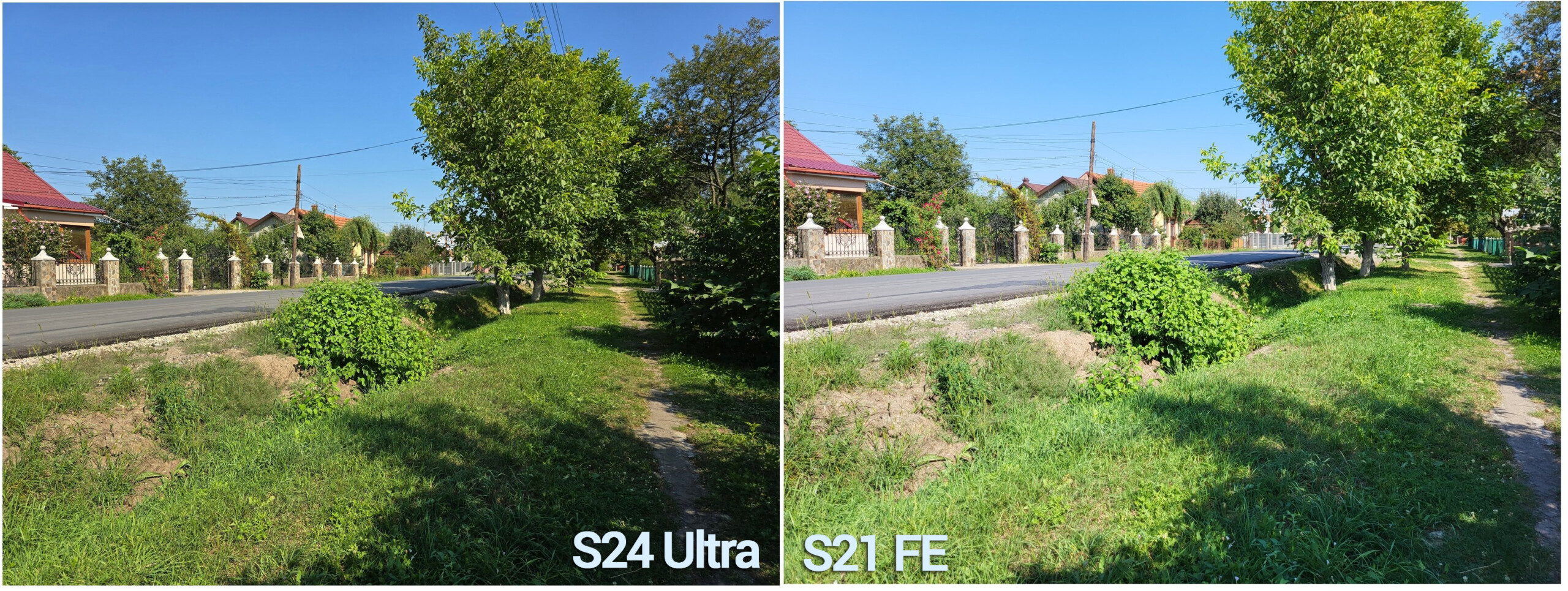 Як я писав раніше, найбільший недолік камер у виконанні Samsung – це «агресивна зелень». Перед вами фотографія з S24 та S21 FE. Тут видно, що хоча флагман трошки переборщує з насиченістю, але вже не так відверто, як S21 FE.