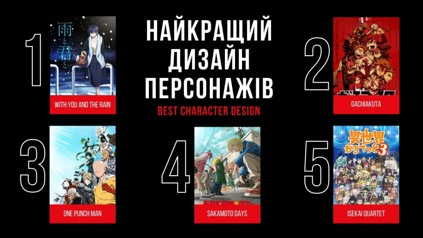 - One Punch Man 3 / Ванпанчмен 3 — Єдина номінація в яку потрапить це аніме;