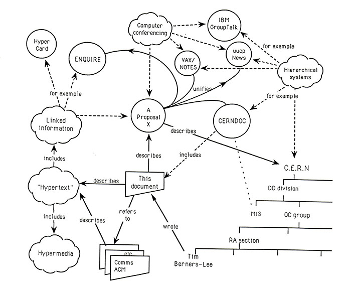 У 1989 році Тім Бернерс-Лі, молодший науковий співробітник Європейської організації з ядерних досліджень (CERN), придумав ідею спростити збір інформації в організації. Його ідея полягала в тому, щоб зберігати всі документи на єдиному веб-сервісі та пов’язувати їх за допомогою гіперпосилань.