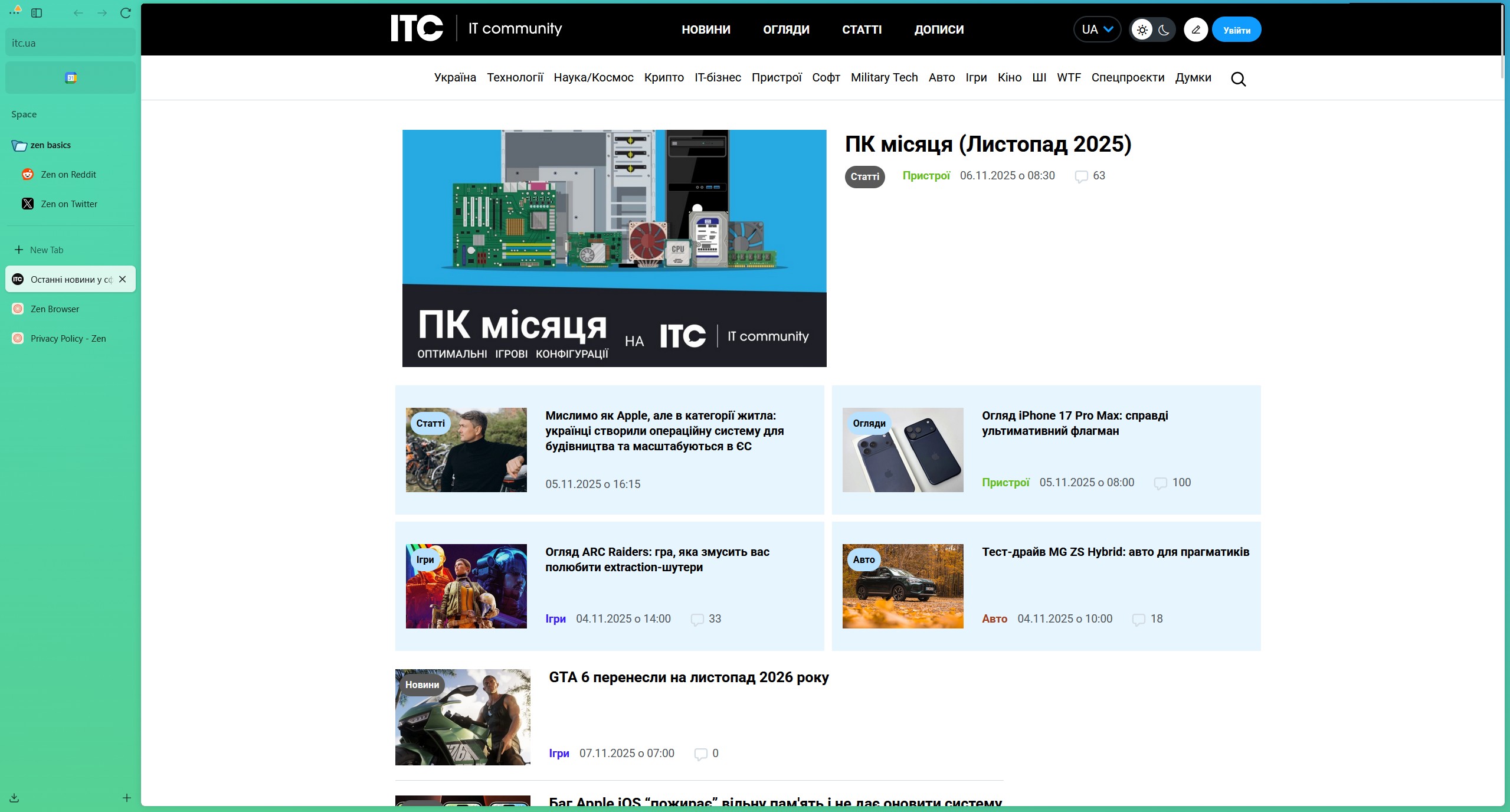 Тож я нарешті наважився на зміни. Але не просто на черговий клон Chrome. Ні, досить з мене Chromium-браузерів. Зростаючі проблеми з приватністю та монополізація інтернету Google змусили мене шукати щось принципово інше. Вибір звузився до Firefox та Zen Browser. Про обидва я чув багато хорошого, але душа просила чогось нового, незвіданого. Я обрав Zen і він став доволі хорошим вибором.