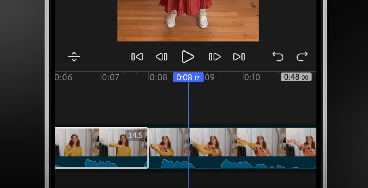 На смартфонах і планшетах тепер доступна справжня монтажна шкала з доріжками для відео, аудіо та тексту — як у десктопній версії Premiere. Можна легко обрізати кліпи, додавати звук, синхронізувати субтитри й користуватися безплатною бібліотекою ефектів та графіки.