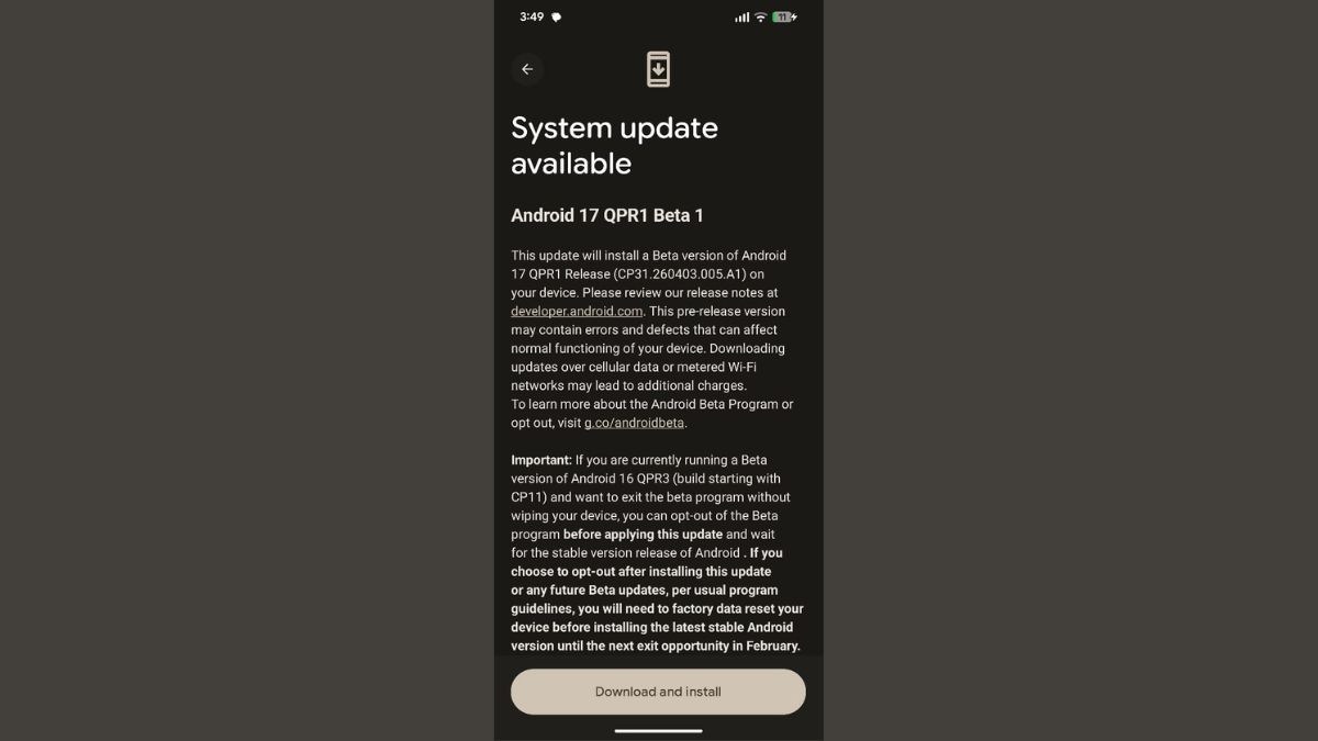 Збірка отримала номер CP31.260403.005.A1. Стабільний реліз Android 17 очікують у середині 2026 року, а фінальна версія QPR1 може вийти ближче до запуску наступних смартфонів Pixel — орієнтовно в серпні або вересні.