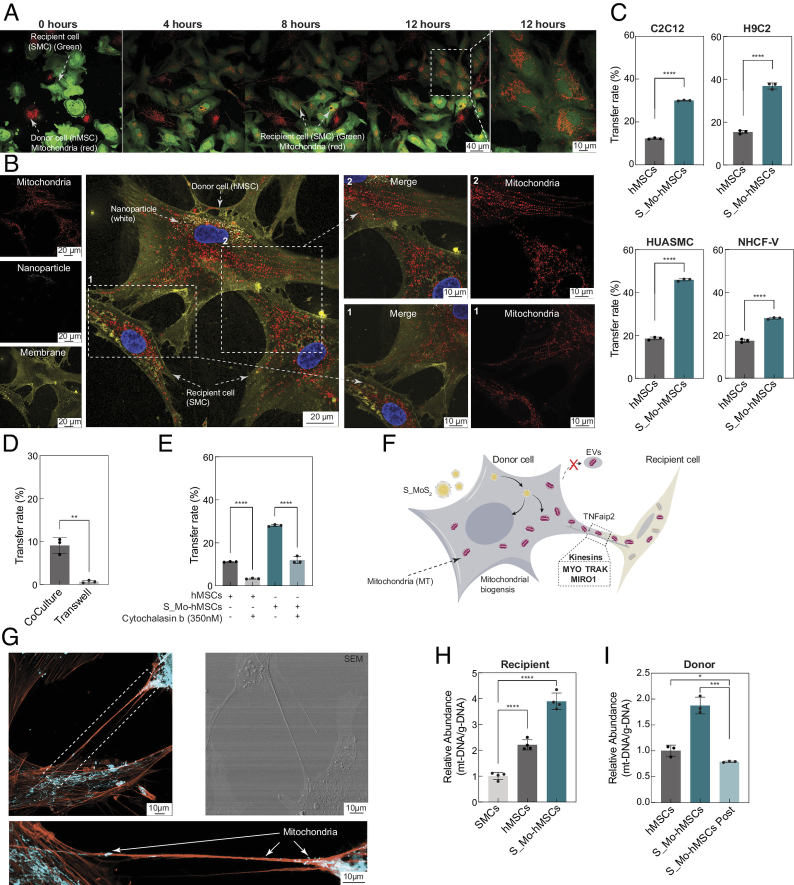 Мітохондрії з віком поступово втрачають енергетичний запас, що викликає різноманітні проблеми зі здоров’ям. Традиційні методи лікування порушення роботи мітохондрій включають приймання ліків, які необхідно приймати постійно і які швидко виводяться з організму. Рішення науковців з Техаського університету A&M у використанні мікроскопічних частинок з дисульфіду молібдену. Під час введення їх у людські стовбурові клітини стимулюється вироблення нових мітохондрій. За результатами дослідження, мезенхімальні стовбурові клітини, що вже мають перевагу для мітохондріального перенесення, виробляють вдвічі більше мітохондрій ніж зазвичай під впливом цих частинок дисульфіду молібдену (наноквітів). Клітини не тільки стають більш енергоефективними, а діляться надлишковою енергією з сусідніми клітинами, таким чином підвищуючи їхню життєздатність.