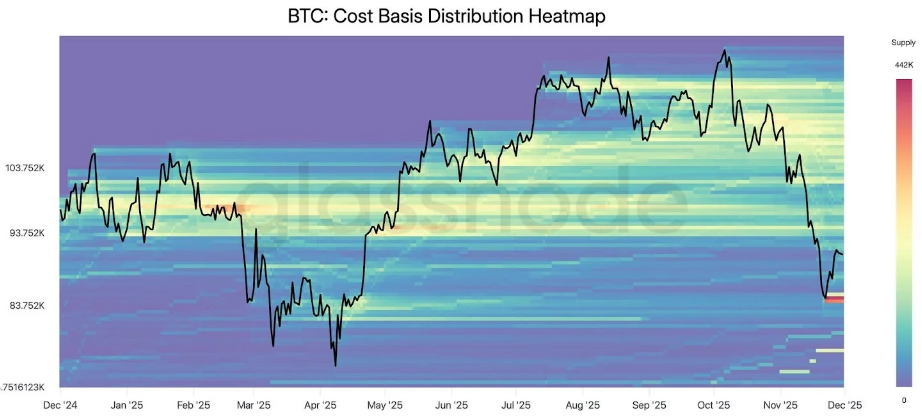 Теплова карта розподілу собівартості BTC / Дані: Glassnode