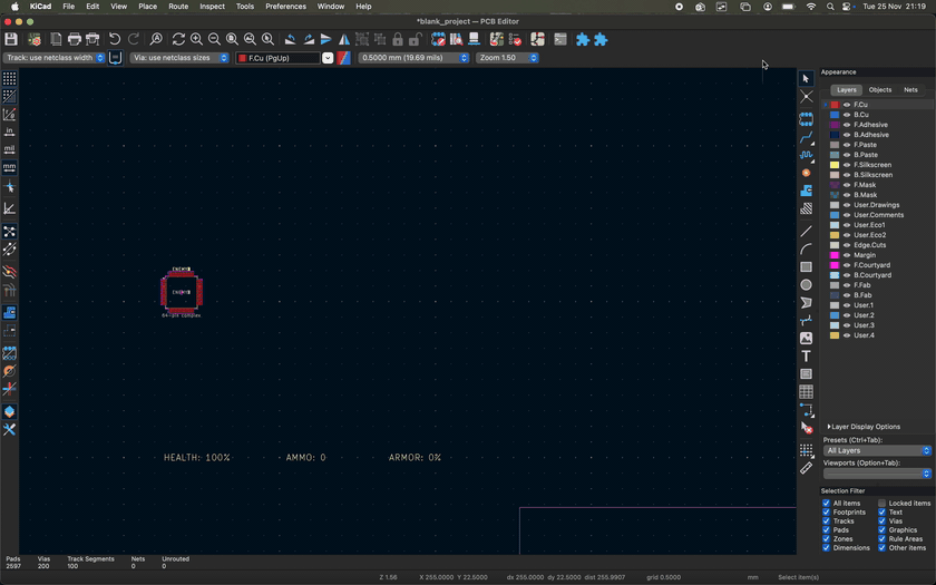 Розробник протестував KiDOOM на різних системах і отримав цілком придатну плавність. MacBook Pro на M1 видає приблизно 15-25 к/с, а конфігурація на Core i7 + RTX 3050 Ti — приблизно 18-28 к/с. Чи допоможе потужніше “залізо”, поки незрозуміло: можливі інші вузькі місця в рендері. Для охочих спробувати самостійно Ейлс описав настройки KiCad, без яких продуктивність падає у 2-5 разів.