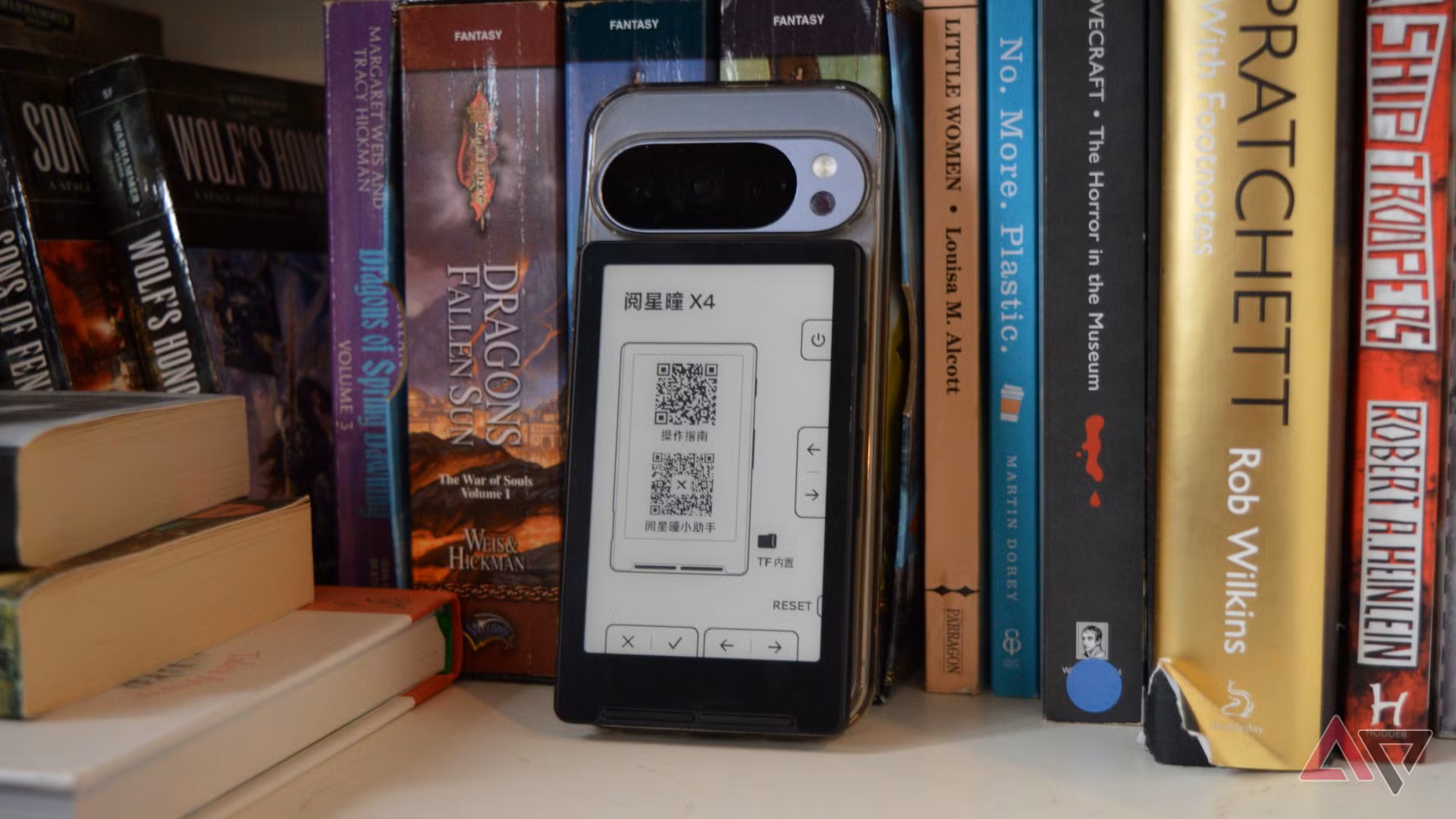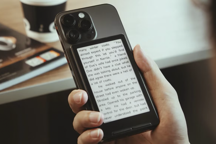 Електронна книга Xteink X4 кріпиться позаду Google Pixel 10 Pro чи іншого магнітного смартфона, і завдяки малому розміру здається природним аксесуаром для моделей з діагоналлю понад 6 дюймів.