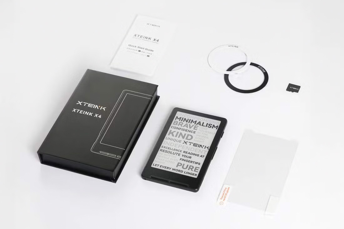 Xteink X4 важить лише 74 г та має розміри 114 x 69 x 5,9 мм. Його дисплей має діагональ 4,3 дюйма та щільність пікселів 220 DPI. Екран не сенсорний, для використання потрібні дві фізичні кнопки перегортання сторінок. Пристрій працює на мікроконтролері ESP32 та має 128 МБ оперативної пам’яті.