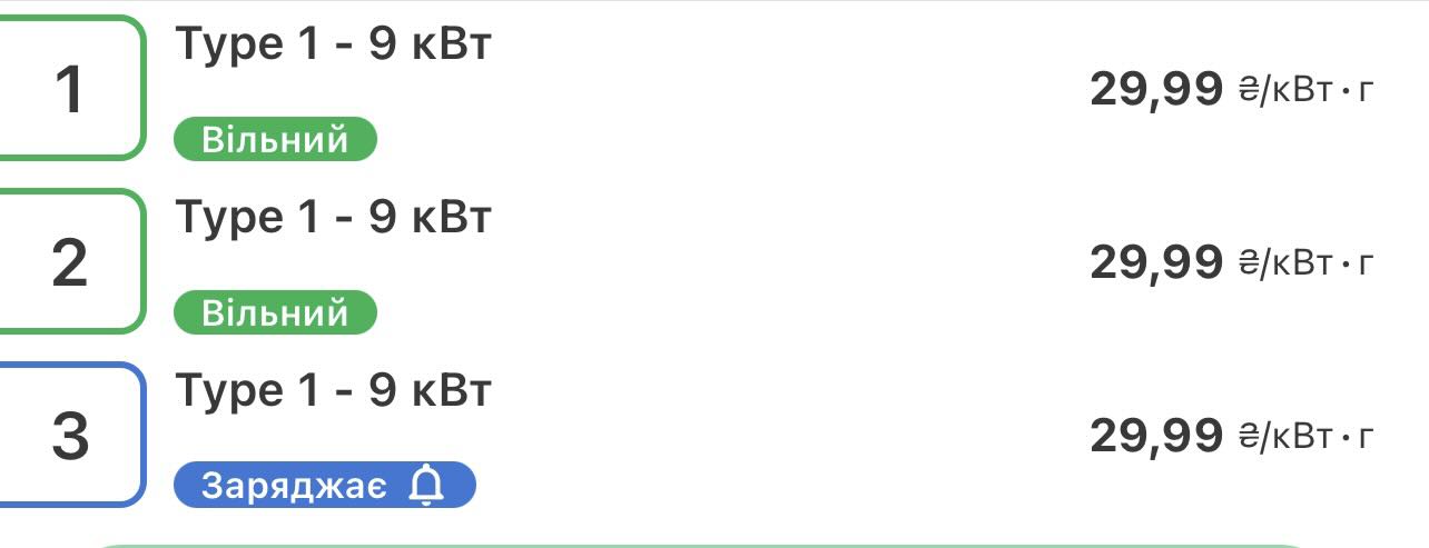 За тарифу 29,99 грн/кВт•год повна зарядка батареї місткістю 60-70 кВт•год коштує приблизно стільки ж, як повний бак невеликого бензинового авто.