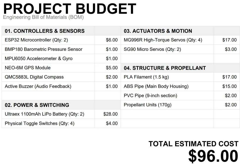 Другий перемикач поширює зв’язок на саму ракету. У цей момент розраховуються кути орієнтації для передніх горизонтальних стабілізаторів ракети (рухомих крил, які висуваються для маневрування). Пускова установка містить мікропроцесор ESP32, GPS, барометр та компас. У саму ракету інтегрований ще один мікропроцесор ESP32, з’єднаний з інерційним вимірювальним блоком MPU6050 для розрахунку положення та швидкості, а також для переміщення передніх горизонтальних стабілізаторів.