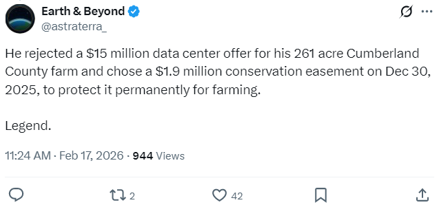 У подібних конфліктах йдеться не лише про втрату землі: величезні потреби в електроенергії штовхають енергомережу до колапсу та підвищують місцеві тарифи на електроенергію, привертаючи увагу політиків і їхніх роздратованих виборців. 86-річний фермер із округу Камберленд, штат Пенсильванія, почув досить. Як повідомляє місцевий телеканал Fox WPMT, фермеру запропонували $60 тис. за акр за будівництво дата-центру на його території.