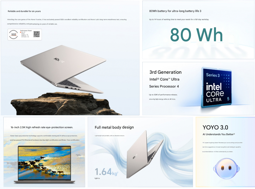 Що цікаво, попри різні розміри, обидві моделі отримали однаковий акумулятор місткістю 80 Вт·год. Підтримується швидка зарядка потужністю 65 Вт, включно з реверсивною. За оцінками Honor, автономність може сягати до 14 годин роботи.