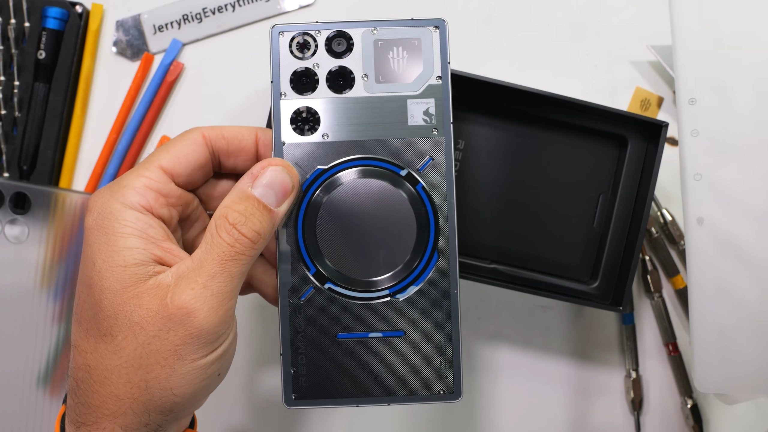 Найбільше емоцій викликало в Зака саме розбирання. Скляна панель повністю прозора, але це удавана прозорість, оскільки начинка телефона прихована за жерстяною стінкою під склом. Видалення останньої відкриває справжній вигляд системи охолодження. Ютубер висловив враження від неї фразою, винесеною у заголовок. Також пізніше був жарт про Тіма Кука, котрий насправді не готує.