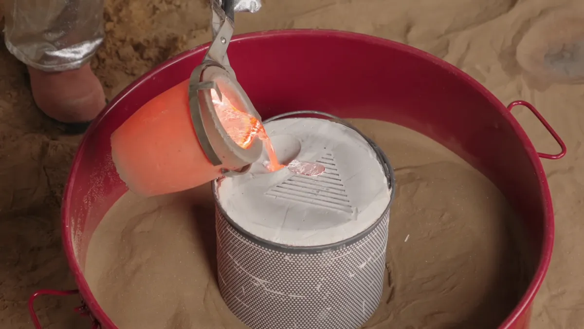 І вже всередину вона залила розплавлений метал. У неї так і вийшов великий трикутний радіатор складної форми, який іншим способом виготовити майже неможливо.