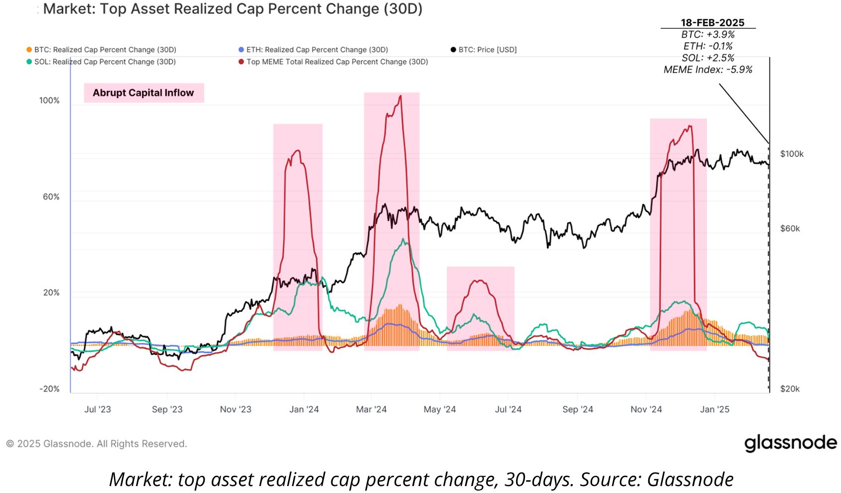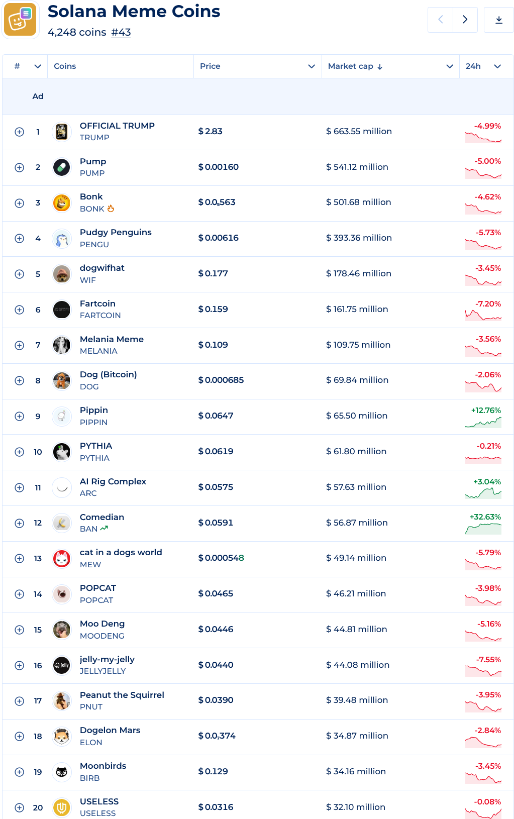 Наслідки позначилися на всій мережі. У лютому 2026 року тижневий DEX-обсяг Solana впав на 62% — з $118,2 млрд до $44,5 млрд — а щоденний дохід мережі скоротився на 79%, до $314 700. Довгострокове накопичення SOL впало на 92% від січневого піку. Проте загальна капіталізація сектору ще тримається: ринкова капіталізація мемкоїнів Solana зросла з $5,1 млрд до близько $6,7 млрд з початку 2026 року.