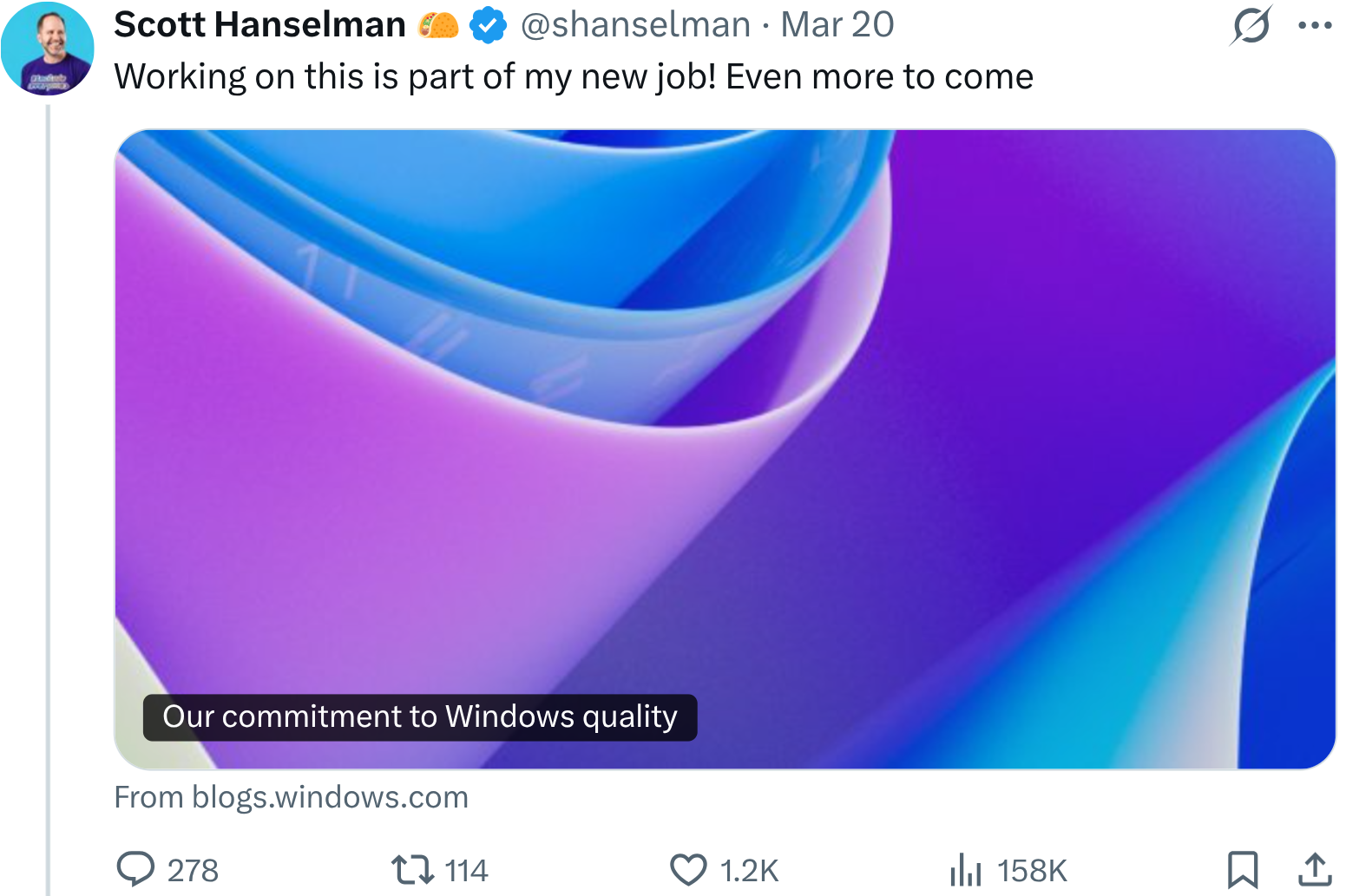 Ця зміна, за повідомленнями, просувається Скоттом Хансельманом — ветераном Microsoft із понад двадцятирічним стажем, який наразі обіймає посаду віцепрезидента та члена технічного персоналу.