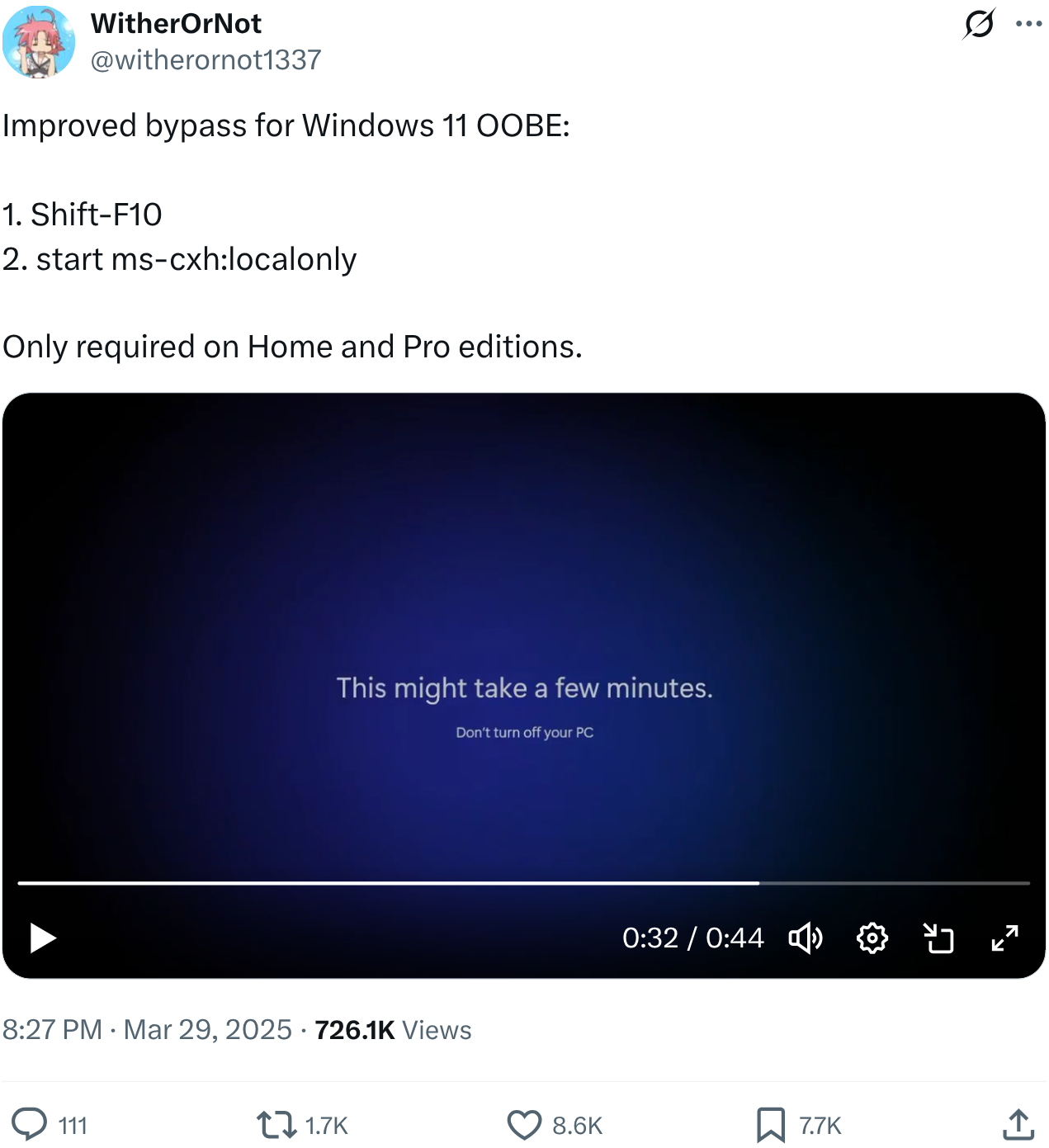 Чому це була така велика проблема? Будемо чесними — не всі хочуть, щоб їхній ПК був прив’язаний до хмари. Зараз налаштування пристрою з Windows 11 Home або Pro вимагає підключення до інтернету та облікового запису Microsoft, і майже без жодного офіційного способу обійти це. Так, існують обхідні шляхи, але більшість користувачів не збираються відкривати командний рядок лише для того, щоб користуватися власним ПК. І, відверто кажучи, вони не повинні цього робити.