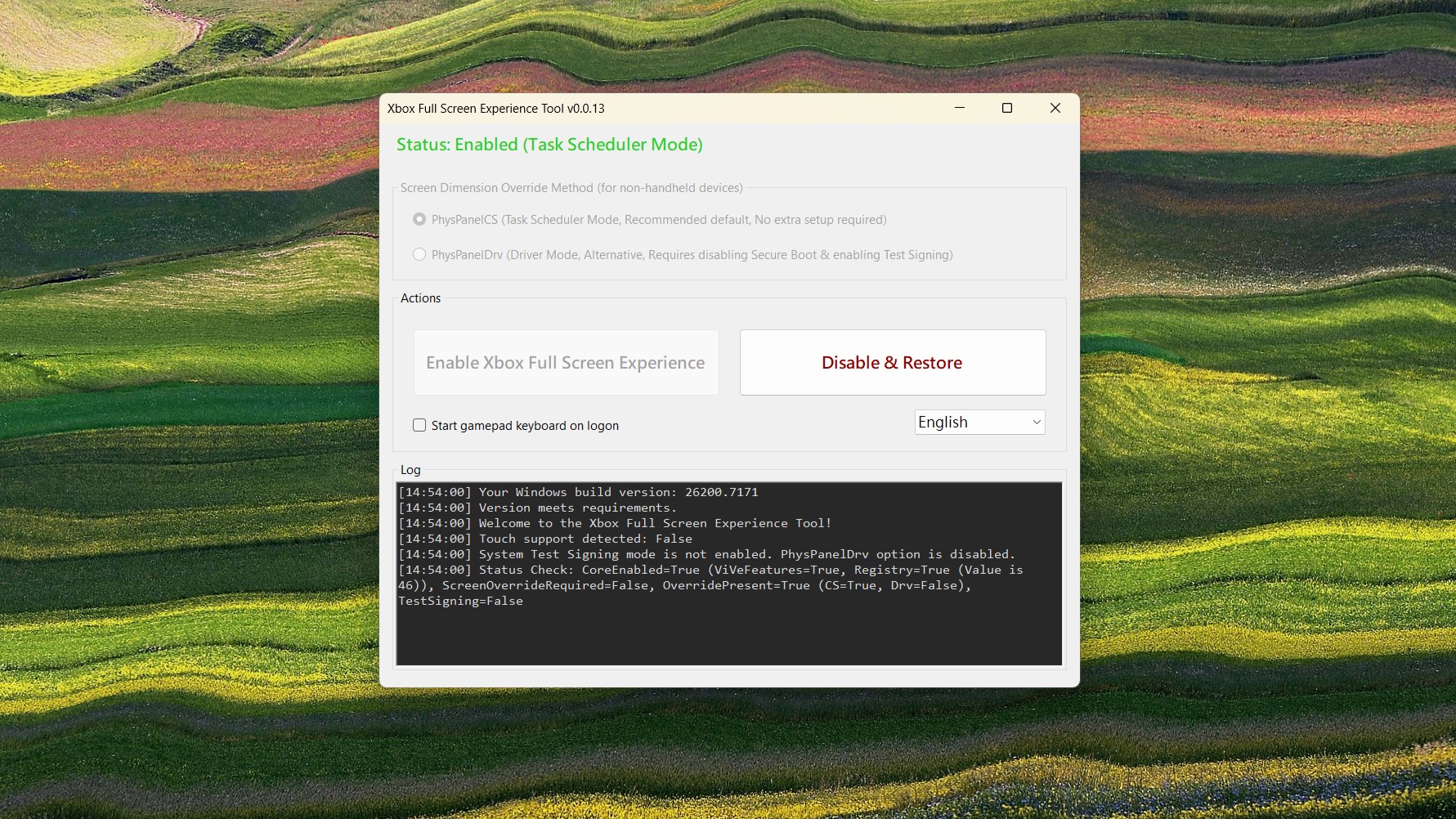 Якщо дуже захотіти, увімкнути повноекранний режим на ПК можна й зараз, за допомогою змін в реєстрі. Але є краще рішення у вигляді утиліти з GitHub. Програма Xbox Full Screen Experience Tool перевіряє сумісність версії Windows, потім слід обрати, чи потрібна підтримка геймпада та натиснути Enable.