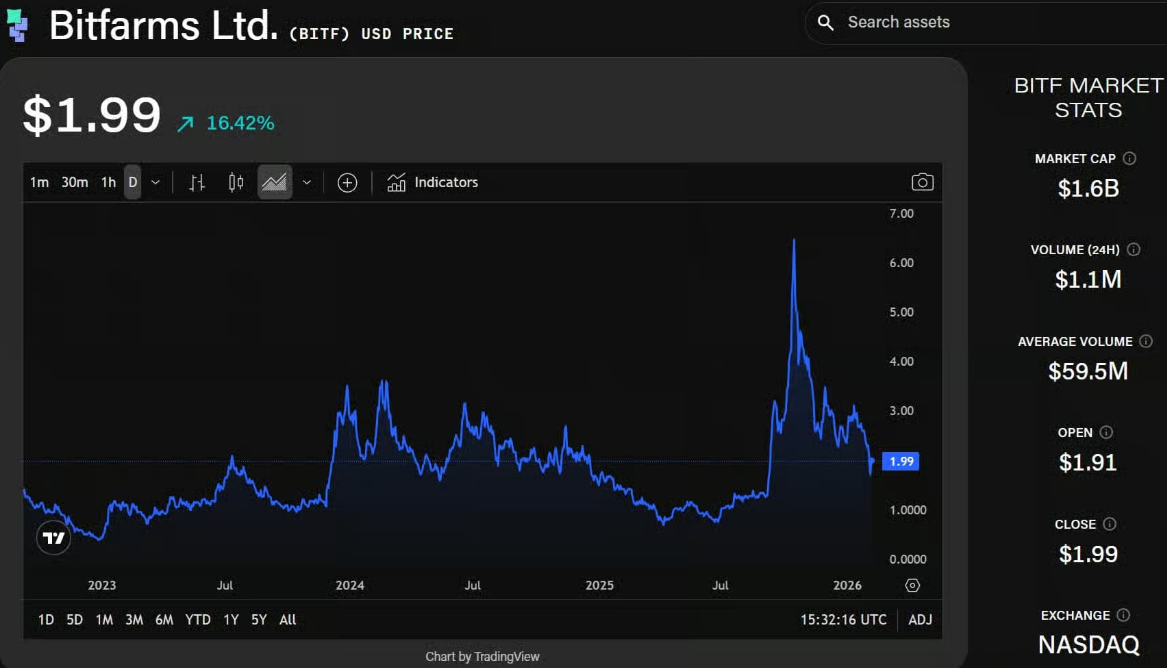 Цей перехід є частиною кількох кроків протягом останнього року, спрямованих на зміну позиціонування компанії. У січні Bitfarms погодилася продати свою останню операцію в Латинській Америці — у Парагваї — за суму до $30 млн, залишивши свій енергетичний портфель повністю зосередженим у Північній Америці, оскільки компанія робить ставку на ШІ-орієнтовані проєкти датацентрів. Акції Bitfarms (NASDAQ: BITF) минулої неділі зросли приблизно на 17% до близько $2 після падіння до приблизно $1,70 у четвер на тлі триваючого розпродажу на крипторинку, який лише за останній тиждень скоротив загальну ринкову капіталізацію приблизно на $750 млрд.