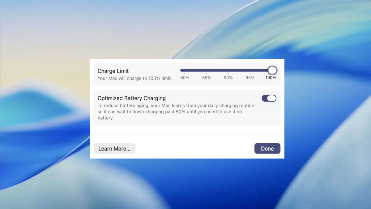 В macOS 26.4 користувачі можуть обрати ліміт від 80% до 100%. Пристрій автоматично припинить заряджання за кілька відсотків від встановленого ліміту. Утім Apple уточнює, що Mac “іноді” доходитиме до 100%, аби “підтримувати точну оцінку стану заряду акумулятора”.