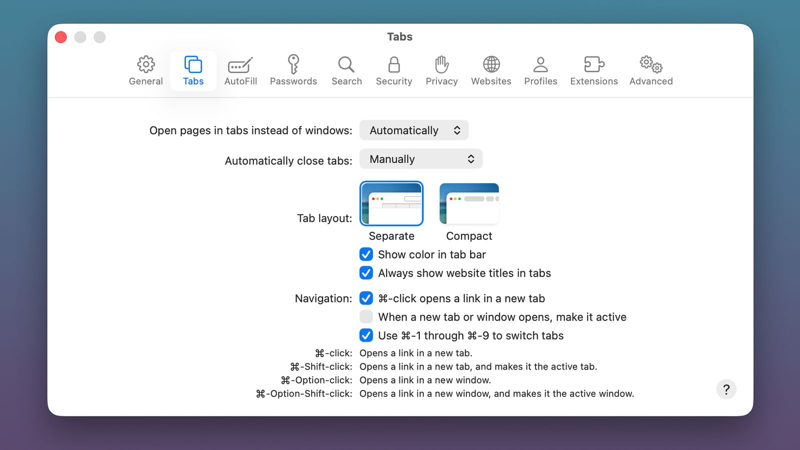 В застосунку Safari на Mac та відповідному розділі в “Налаштуваннях” на iPad тепер є опція, яка активує компактну панель вкладок як альтернативу стандартній.