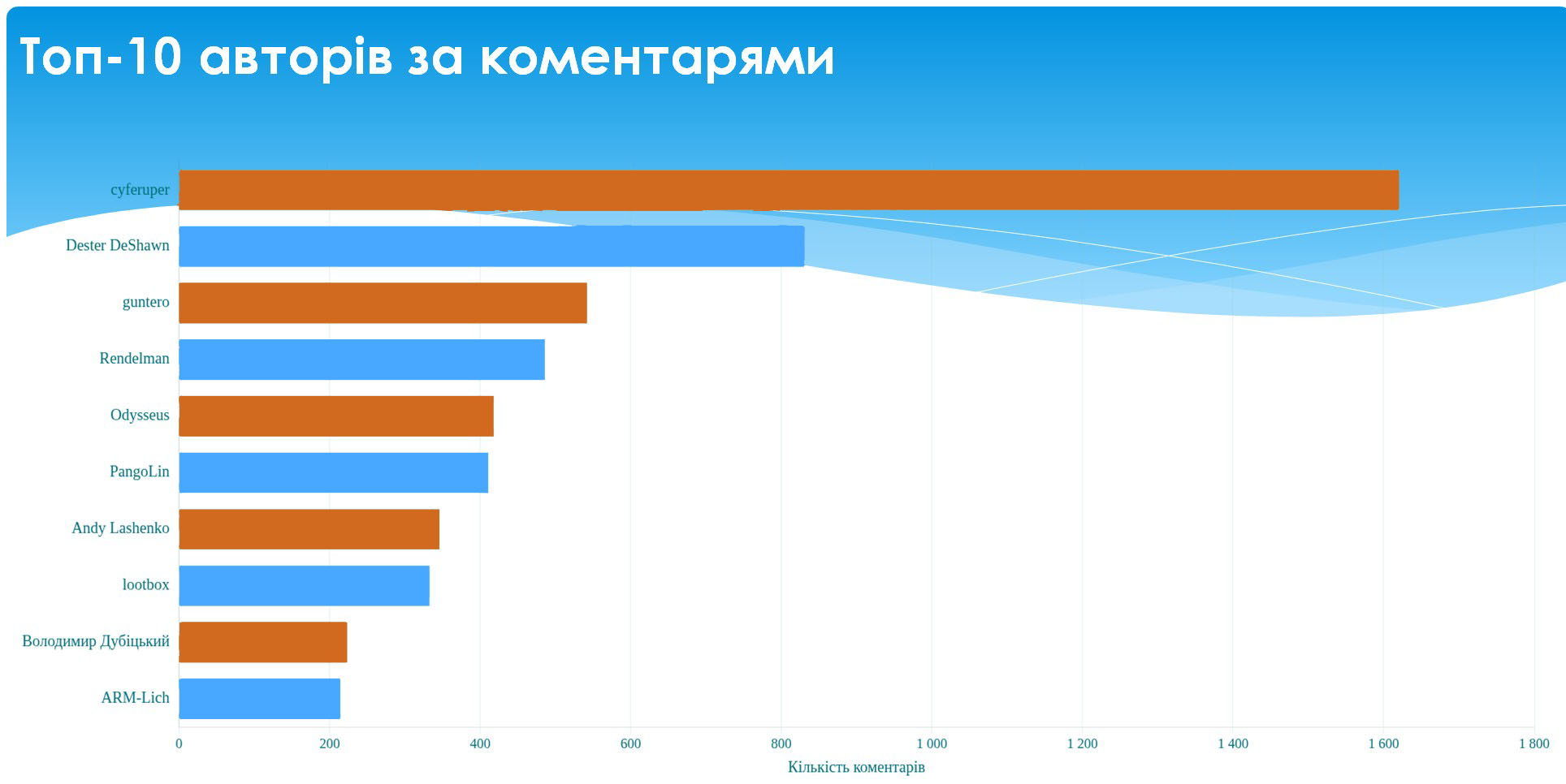Коментарі завжди були невіддільною частиною будь-якої спільноти. Вони як мотивують наших дописувачів продовжувати свою працю, так і навпаки можуть відбити будь-яке бажання. Тому моя порада Вам, шановні автори: не звертайте увагу на “токсичну сторону”, а краще зайвий раз гляньте, скільки позитивних лайків та переглядів отримала ваша стаття.