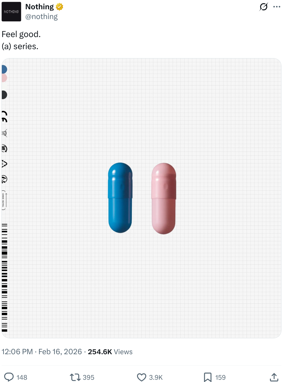 Карл Пей, засновник і генеральний директор Nothing, опублікував анонс Apple у своєму профілі в X із написами “Nothing” і “March 5”, розміщеними поверх деталей Apple. Подальший допис в акаунті Nothing підтвердив проведення заходу о 10:30 за GMT. Це відбувається після інших нещодавніх тизерів від Nothing, зокрема одного, який з якоїсь причини є просто презервативом — імовірно, жарт до Дня святого Валентина в поганому смаку, але це виглядає абсолютно дивно — а також іншого з блакитними та рожевими пігулками, що демонструють потенційні кольори, які Nothing додає до своєї лінійки.