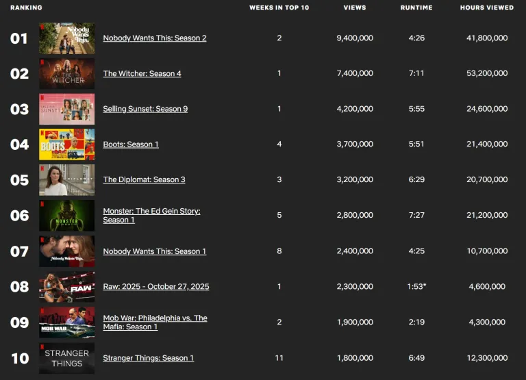 Четвертий сезон “Відьмака” з Ліамом Хемсвортом стартував на Netflix з 7,4 млн глядачів і посів лише друге місце у топ-10 англомовних шоу на стримінгу — вперше для екранізації, оскільки три попередні сезони й навіть спінофи одразу “залітали” на першу позицію.