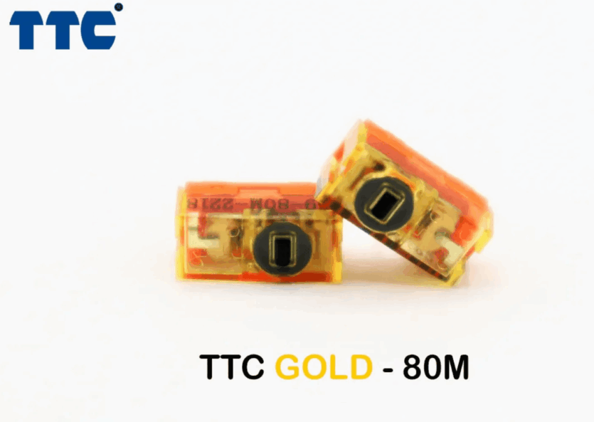 Продукція бренду TTC зросла у популярності завдяки серії “Dustproof Gold” з унікальним пилозахисним корпусом та позолоченими контактами. Золоті версії 30M, 60M та 80M всі мають заявлені 60±15 gf, але реальні вимірювання показують ~65-66 gf (60M версія відчувається трохи легшою). Існує також рожева версія Rose Gold.